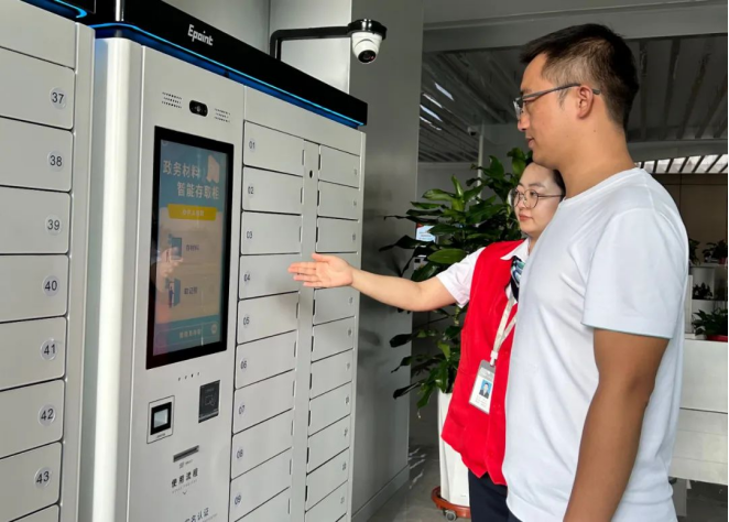 此外,為進(jìn)一步提升政務(wù)服務(wù)智能化水平,拓展24小時(shí)自助服務(wù)區(qū)的服務(wù)深度,中心為自助服務(wù)區(qū)配備了智能存取柜,以便于辦事群眾放置申請(qǐng)材料和工作人員放置結(jié)果文件,真正實(shí)現(xiàn)了全過(guò)程自助辦的閉環(huán)。